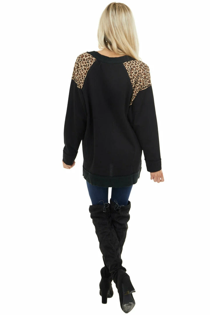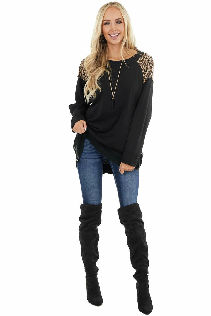 - Black Long Sleeve with Leopard Print Detail on Shoulders
