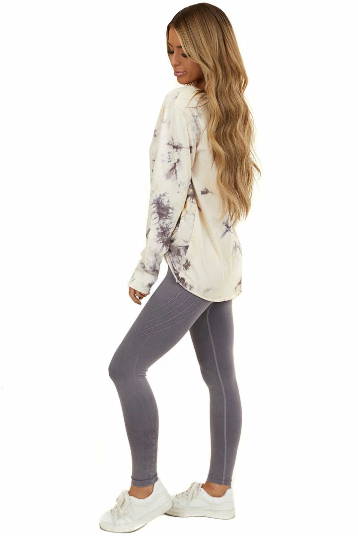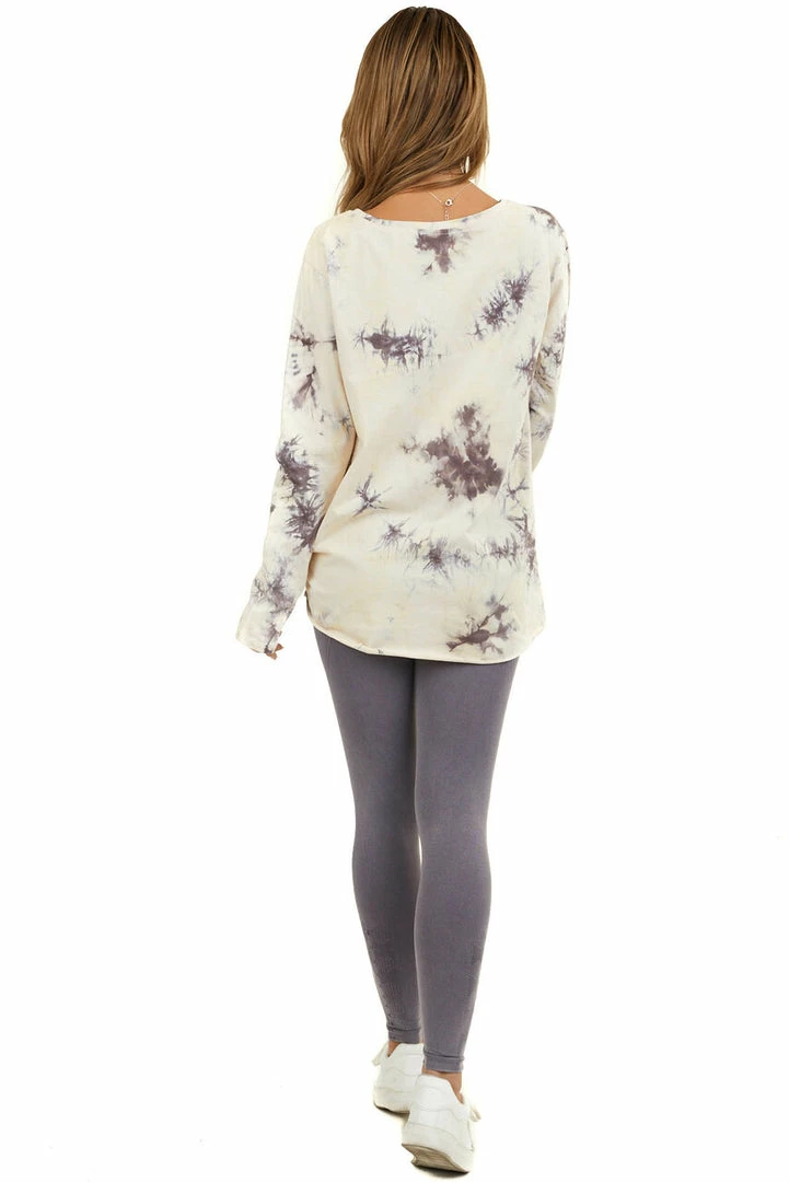 - Coffee and Cream Tie Dye Long Sleeve with Front Knot Detail