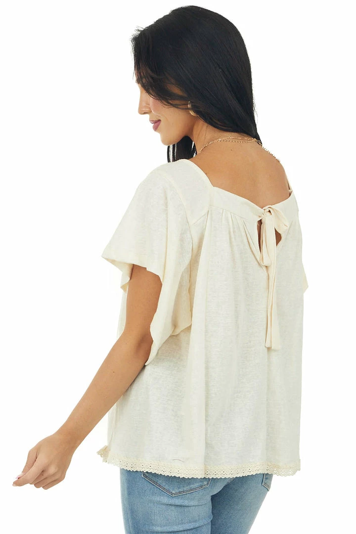 - Cream Flutter Sleeve Knit Top with Lace Hem