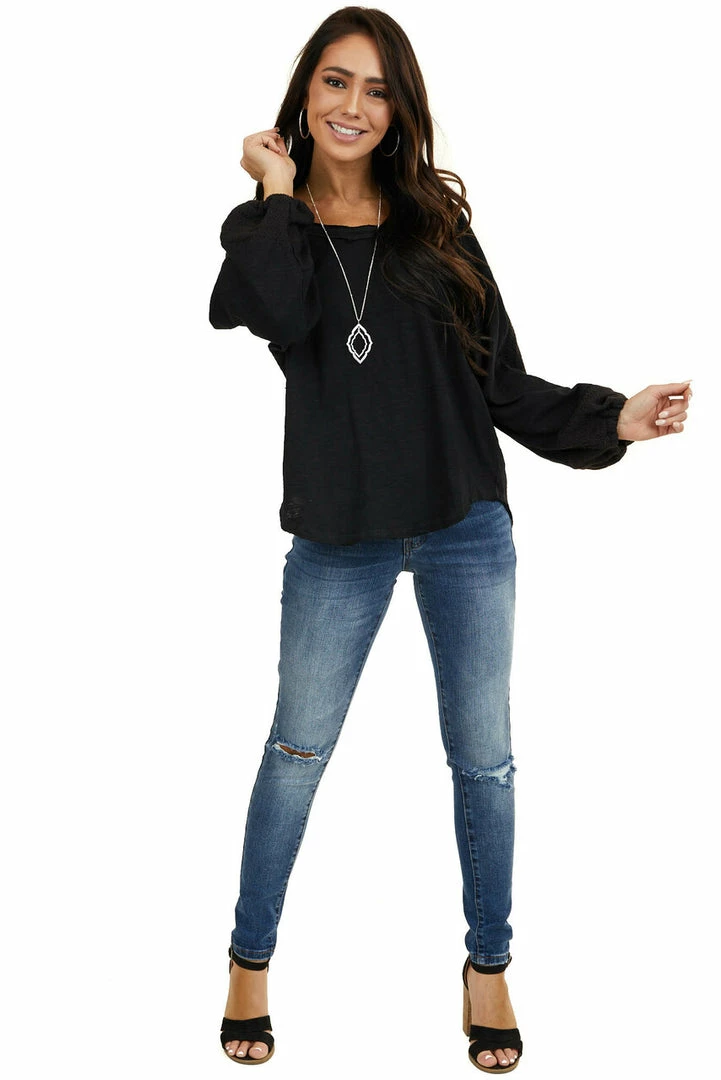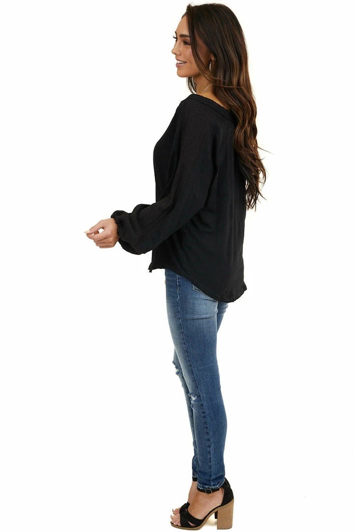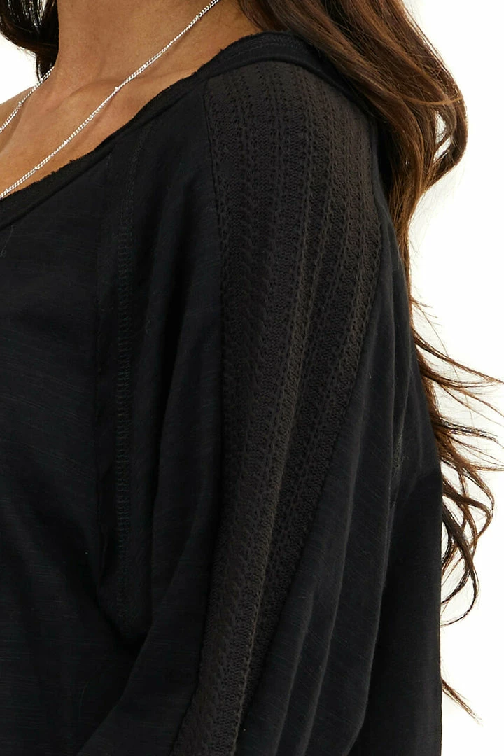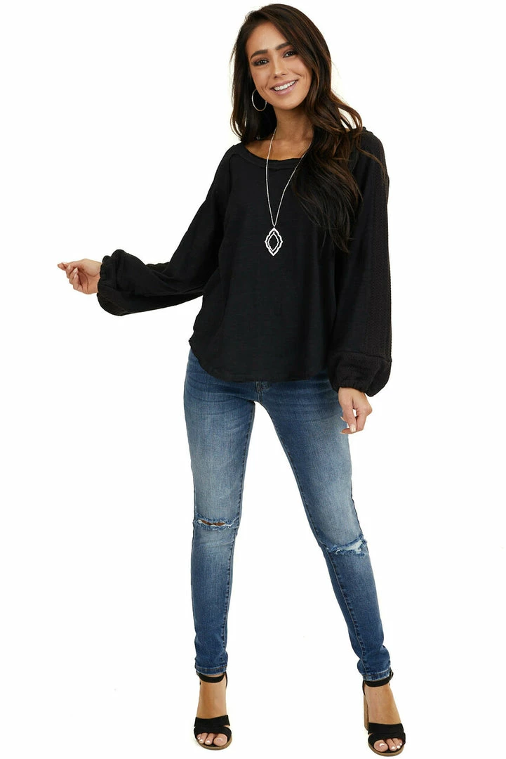 - Heathered Black Knit Top with Contrast Knit Bubble Sleeves