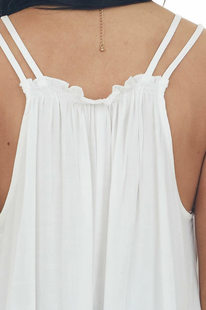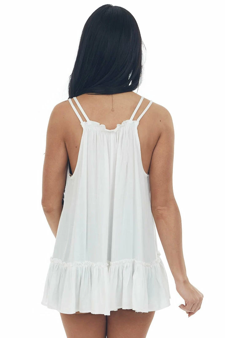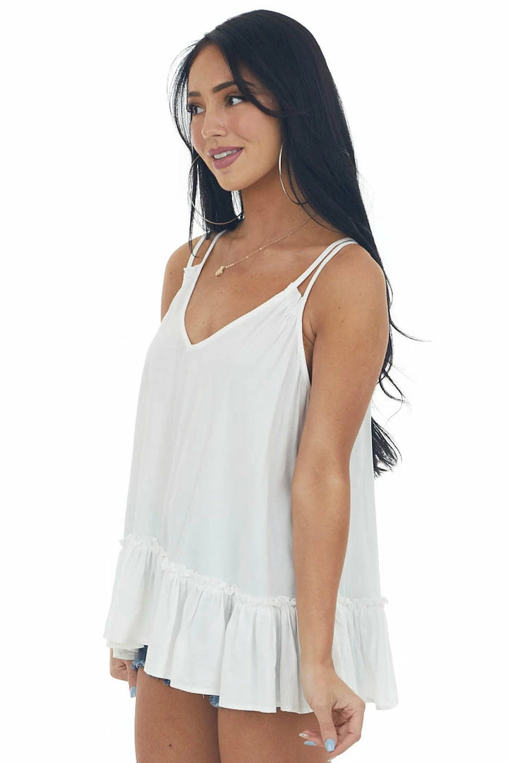 - White Ruffle Hem Double Strap V Neck Tank Top