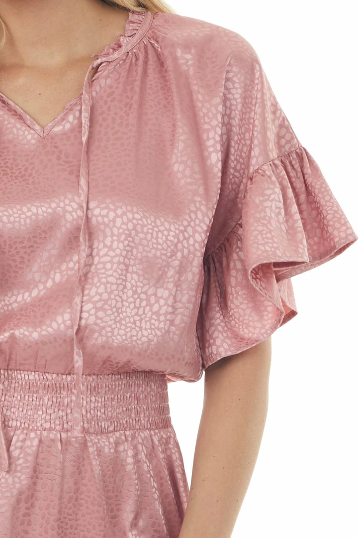 - Vintage Rose Jacquard Animal Print Ruffle Dress