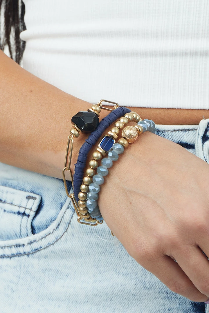 - Bracelet 3: Gold beads with Cobalt charm detail