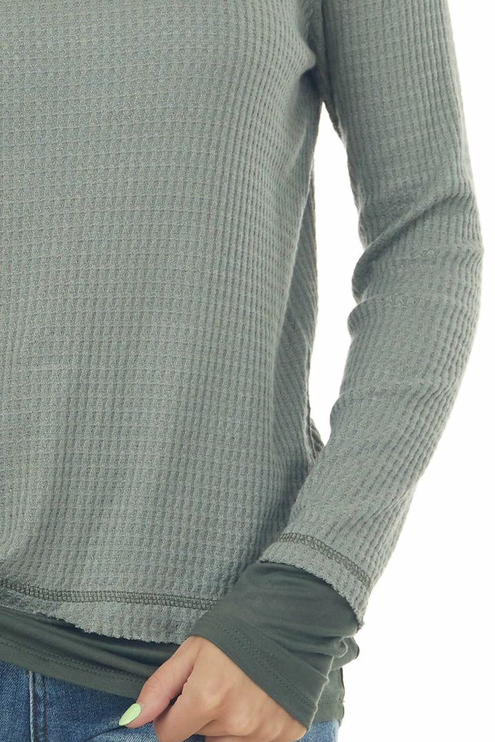 - Faded Jade Long Sleeve Thin Waffle Knit Top