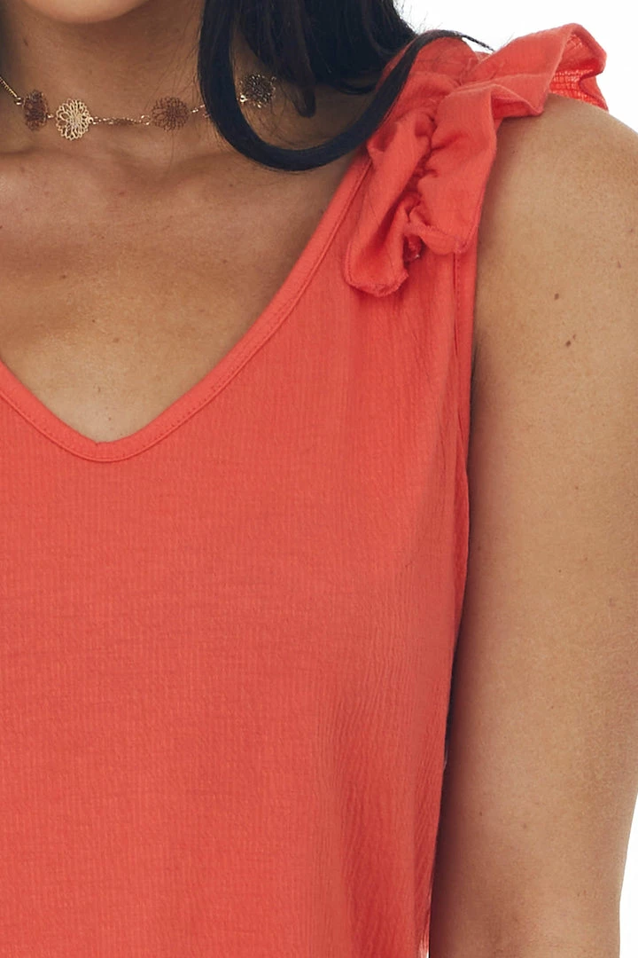 - Fire V Neck Knit Tank Top with Ruffle Straps