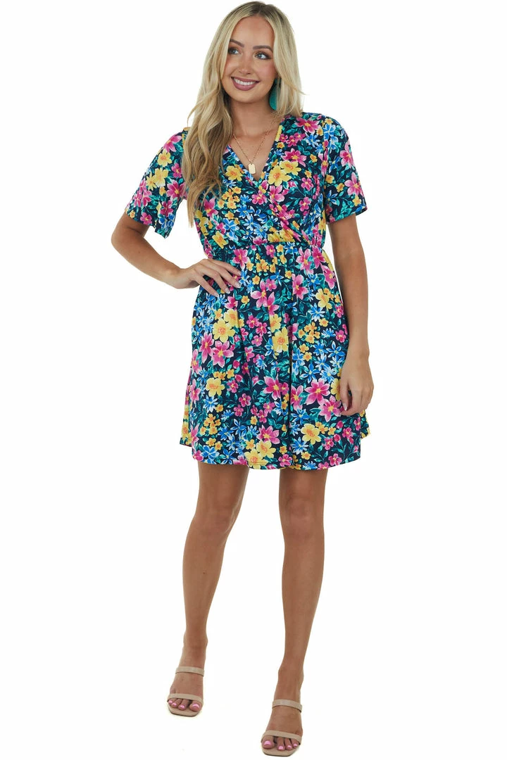 - Floral print in shades of Navy, Mulberry, Bubblegum, Cobalt, Baby Blue, Tangerine, Canary Yellow, Pistachio, Pine and Ivory