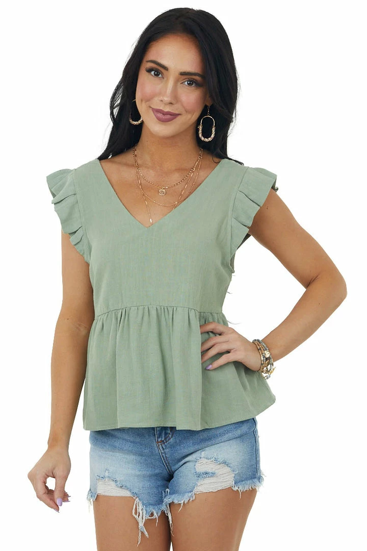 - Dusty Sage V Neck Strappy Back Detail Woven Top