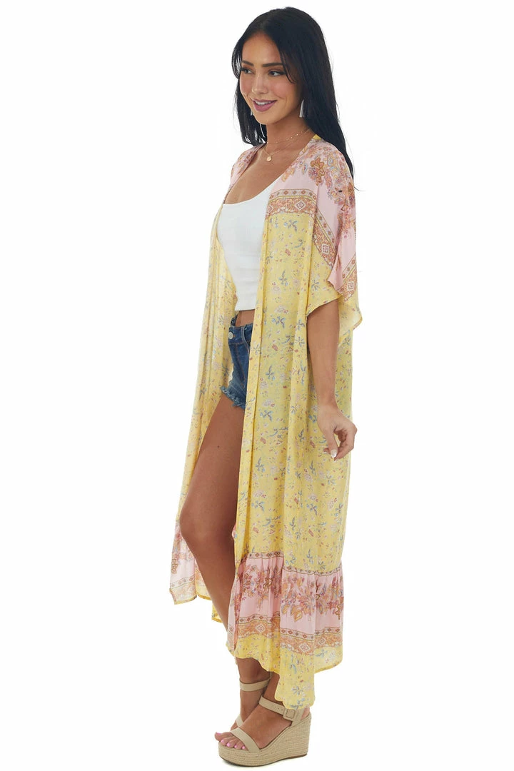 - Honeysuckle Floral Ruffle Hem Midi Length Kimono