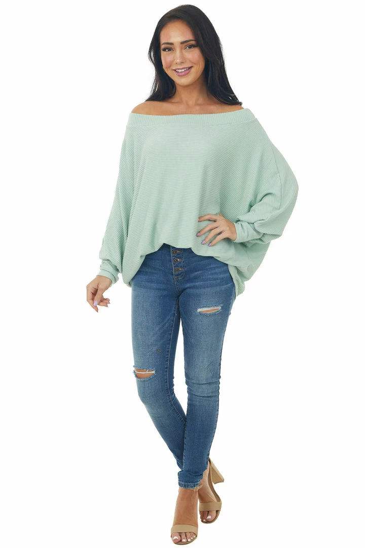 - Mint Oversized Boat Neck Top with Long Dolman Sleeves