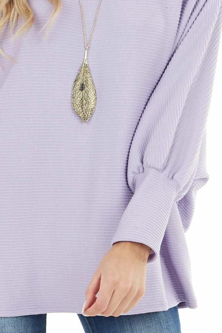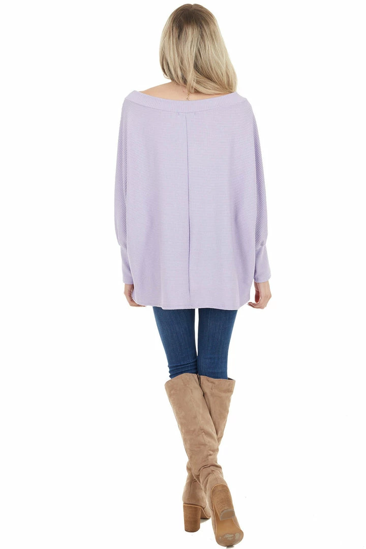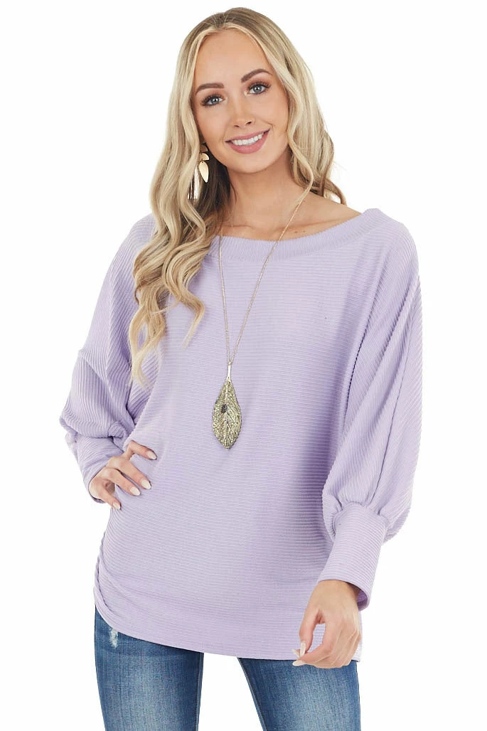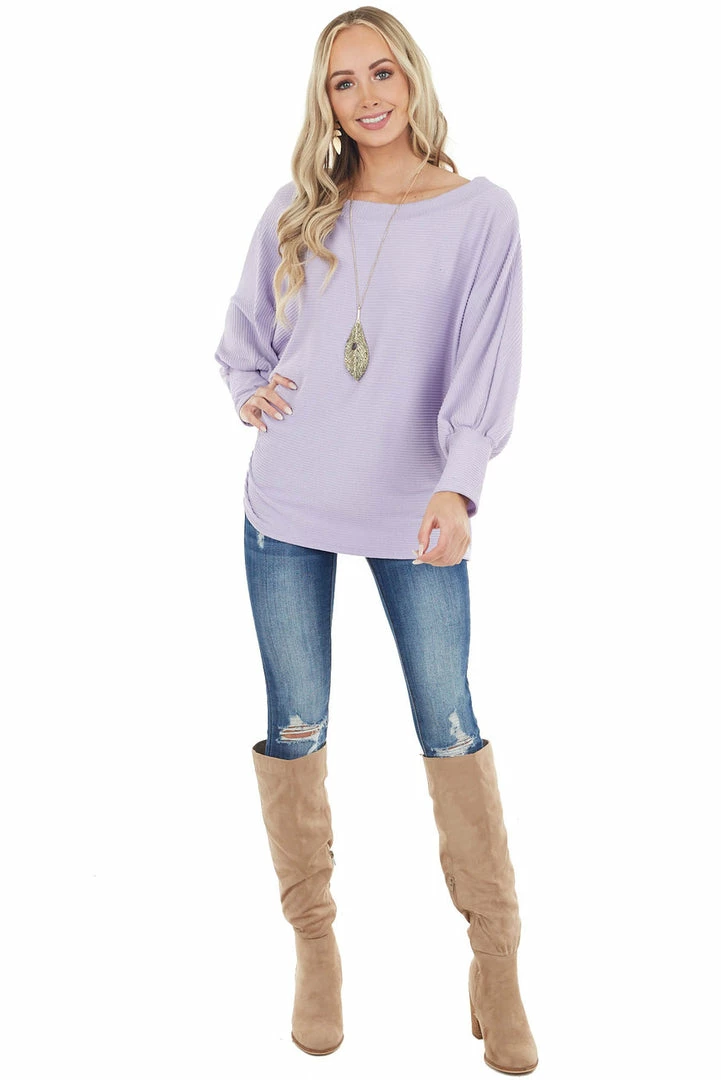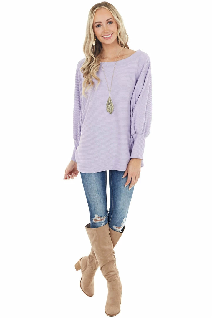 - Lavender Oversized Boat Neck Top with Long Dolman Sleeves