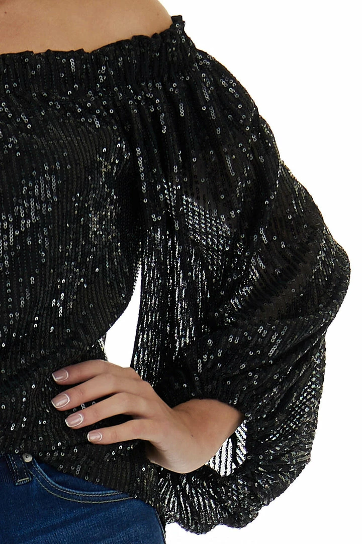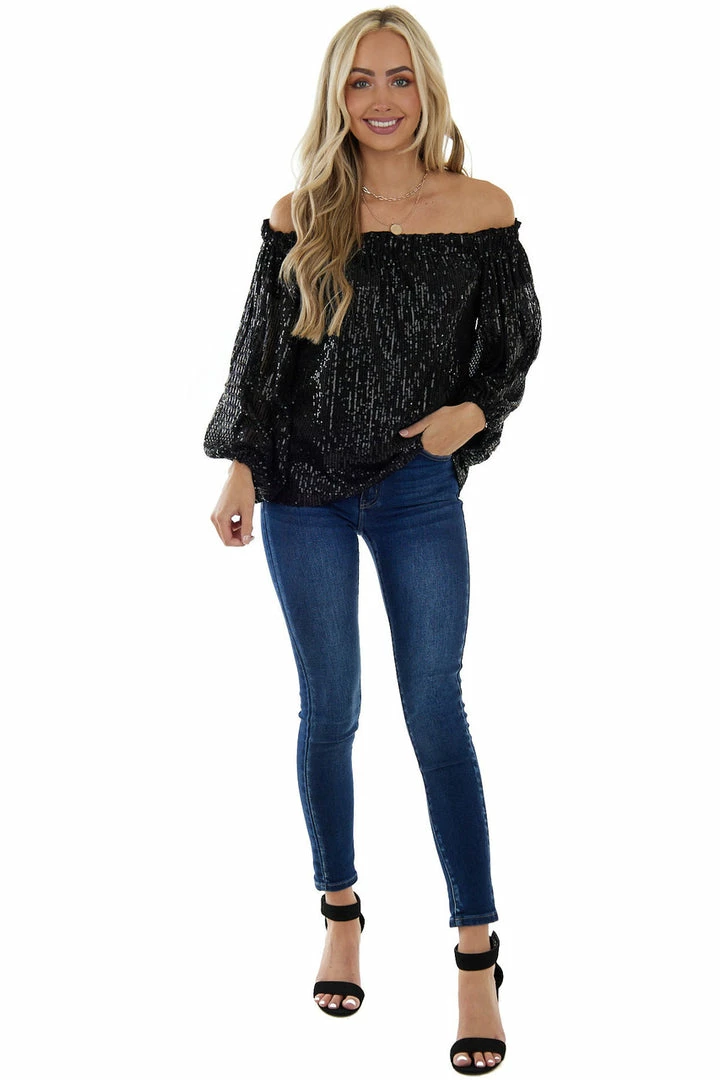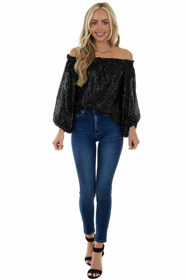 - Black Sequined Off the Shoulder Blouse