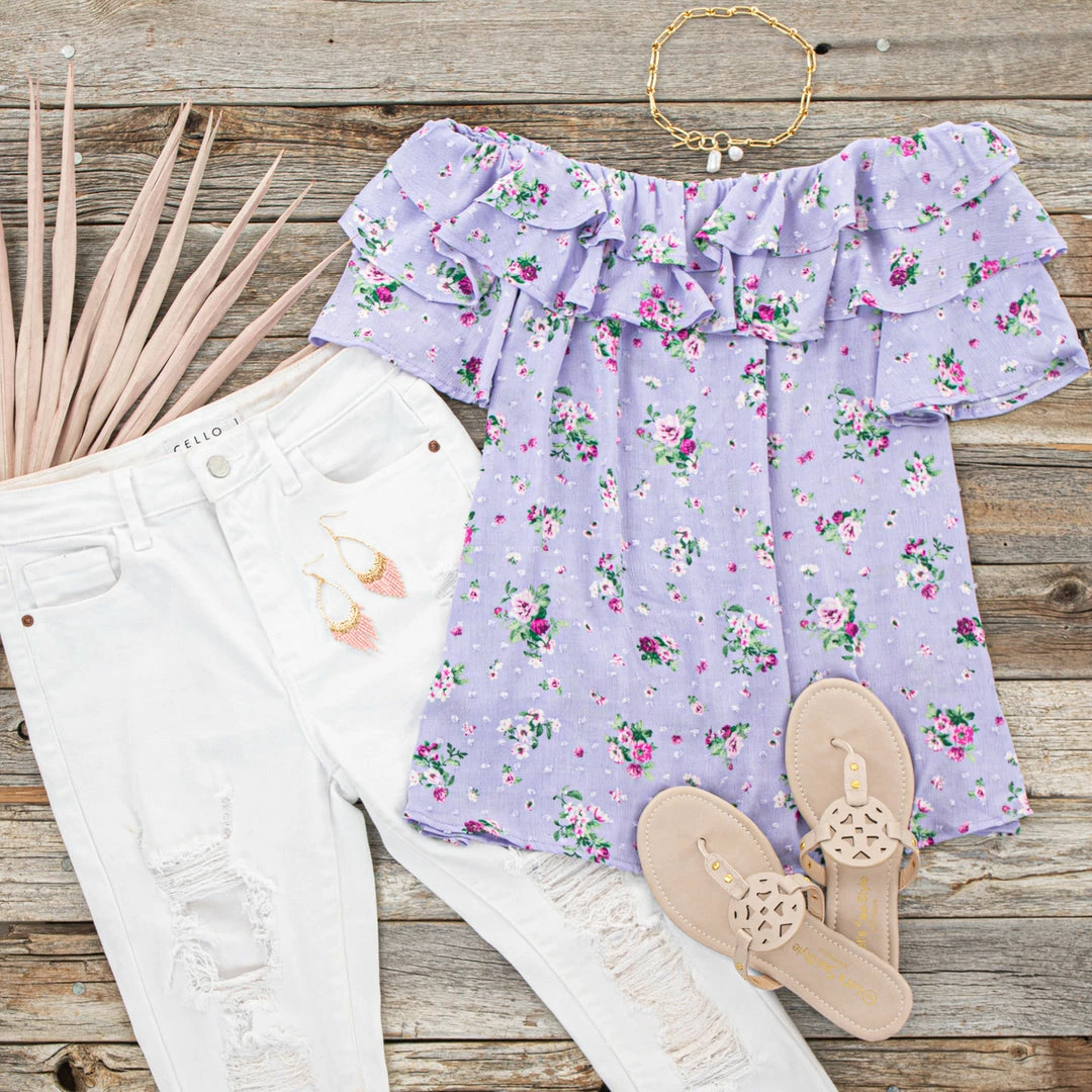 - Iris Floral Print Off the Shoulder Swiss Dot Woven Top
