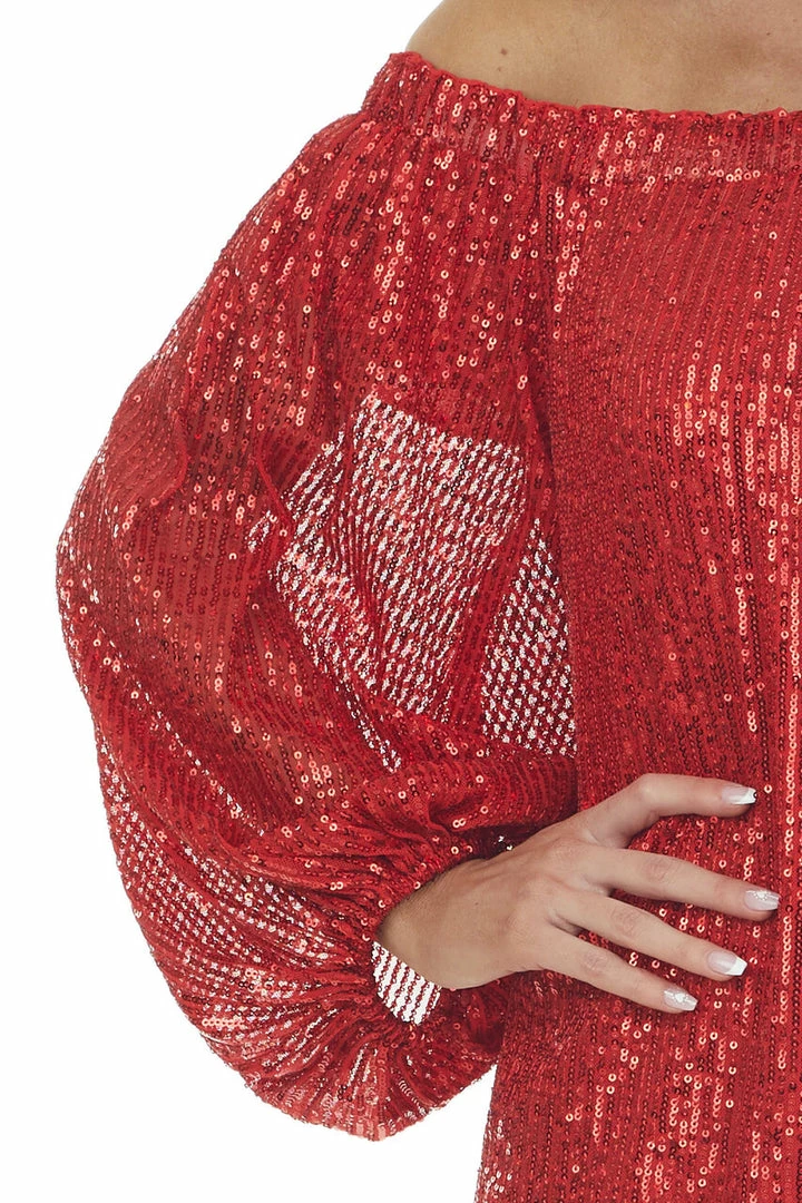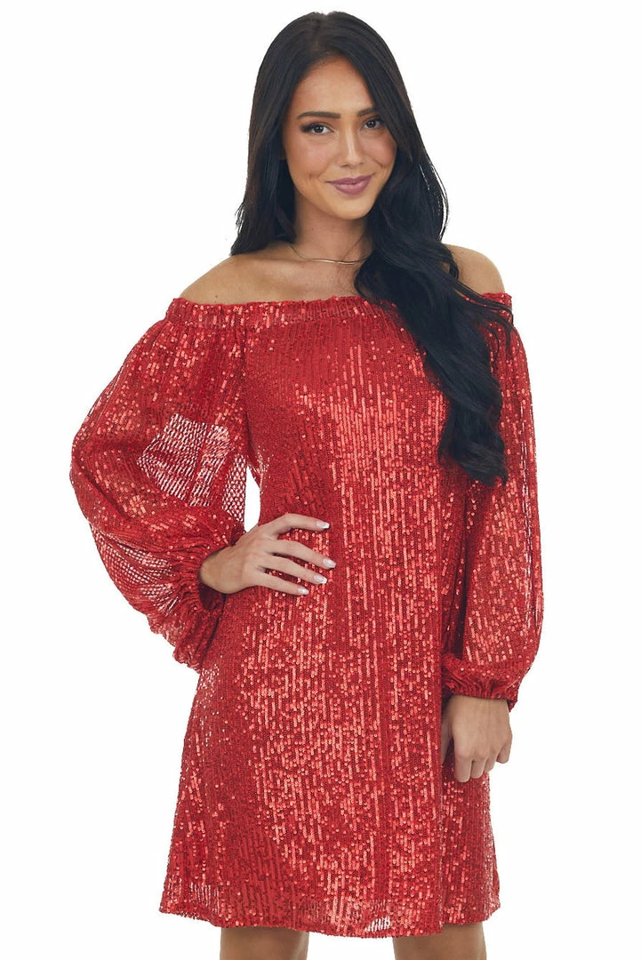 - Lipstick Red Sequin Off Shoulder A Line Dress