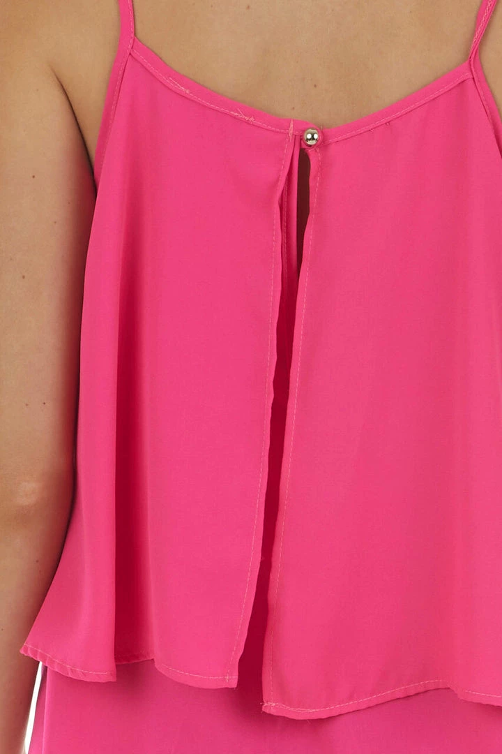 - Hot Pink Double Layer Flowy Sleeveless Blouse