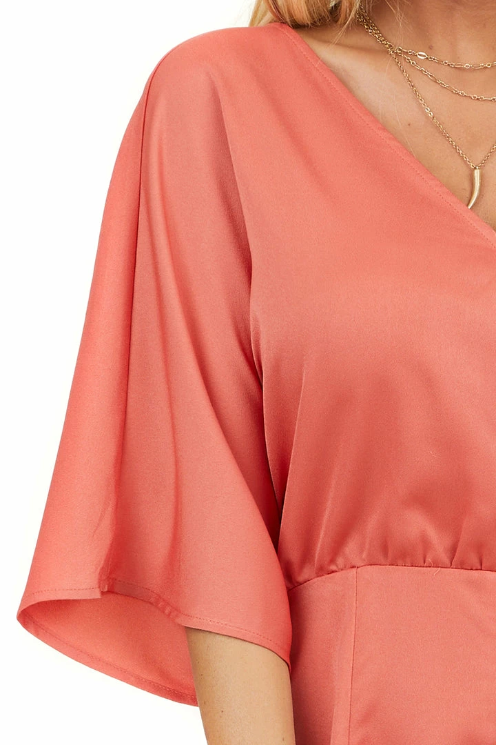 - Brick Red Short Sleeve Woven Surplice Romper