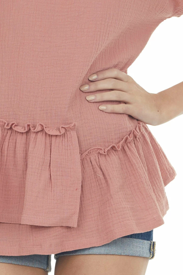 - Mauve Textured Woven Top with Asymmetrical Layered Peplum