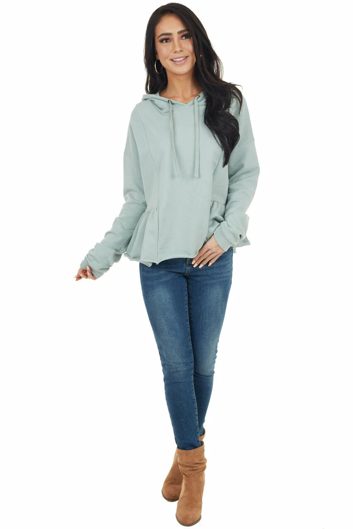 - Sage Hooded Top with Drawstrings and Peplum Detail