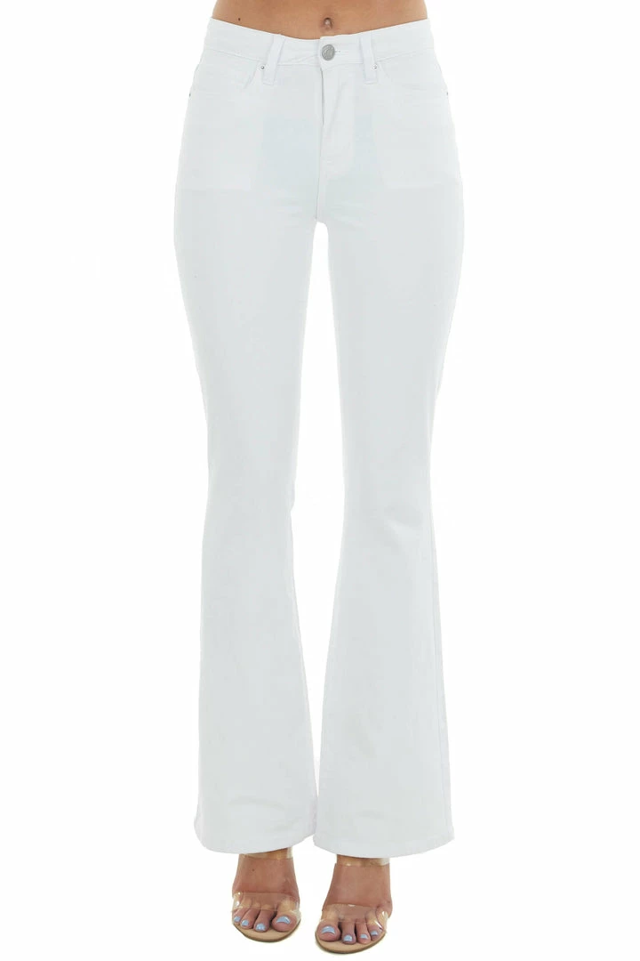 - Off White High Rise Flare Jeans with Zipper Fly