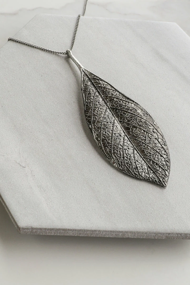 Be the first to review “ZAD Accessories Antique Silver Long Textured Leaf Necklace” Cancel reply